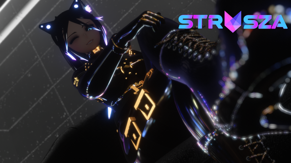 Bodysuit, Drone Mask, Cat Headphones, Harness, Hood, Gloves, Choker and Wrist Bracelets by Strasza using Blender and Substance Painter